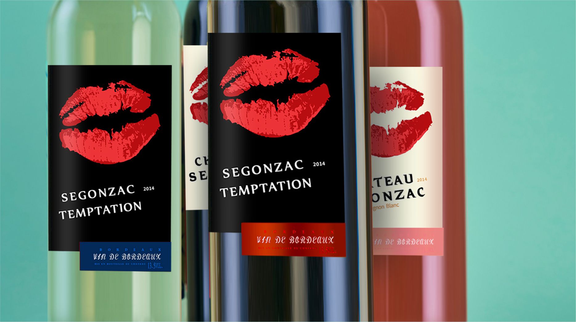 文字設(shè)計(jì):這款紅酒的文字設(shè)計(jì)比較簡(jiǎn)潔,只有品牌名稱和產(chǎn)品名稱兩部分。品牌名稱“SEGONZAC TEMPTATION”采用了襯線字體,顯得高雅和穩(wěn)重,與酒瓶的瓶蓋相呼應(yīng),體現(xiàn)了品牌的歷史和傳統(tǒng)。產(chǎn)品名稱則采用了白色的襯線字體,顯得現(xiàn)代和時(shí)尚,與酒瓶的白色標(biāo)簽相呼應(yīng),突出了產(chǎn)品的特色和差異化。文字的大小和位置也恰到好處,既不搶占紅唇的視覺焦點(diǎn),又能夠清晰地傳達(dá)出信息和意義。